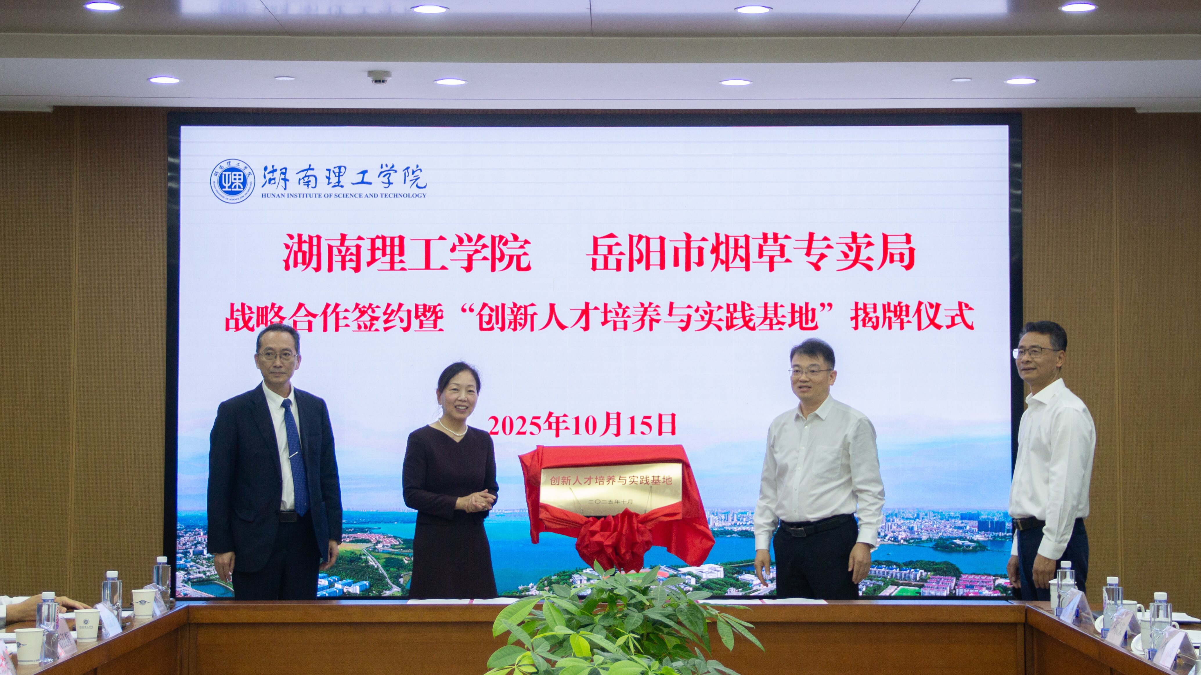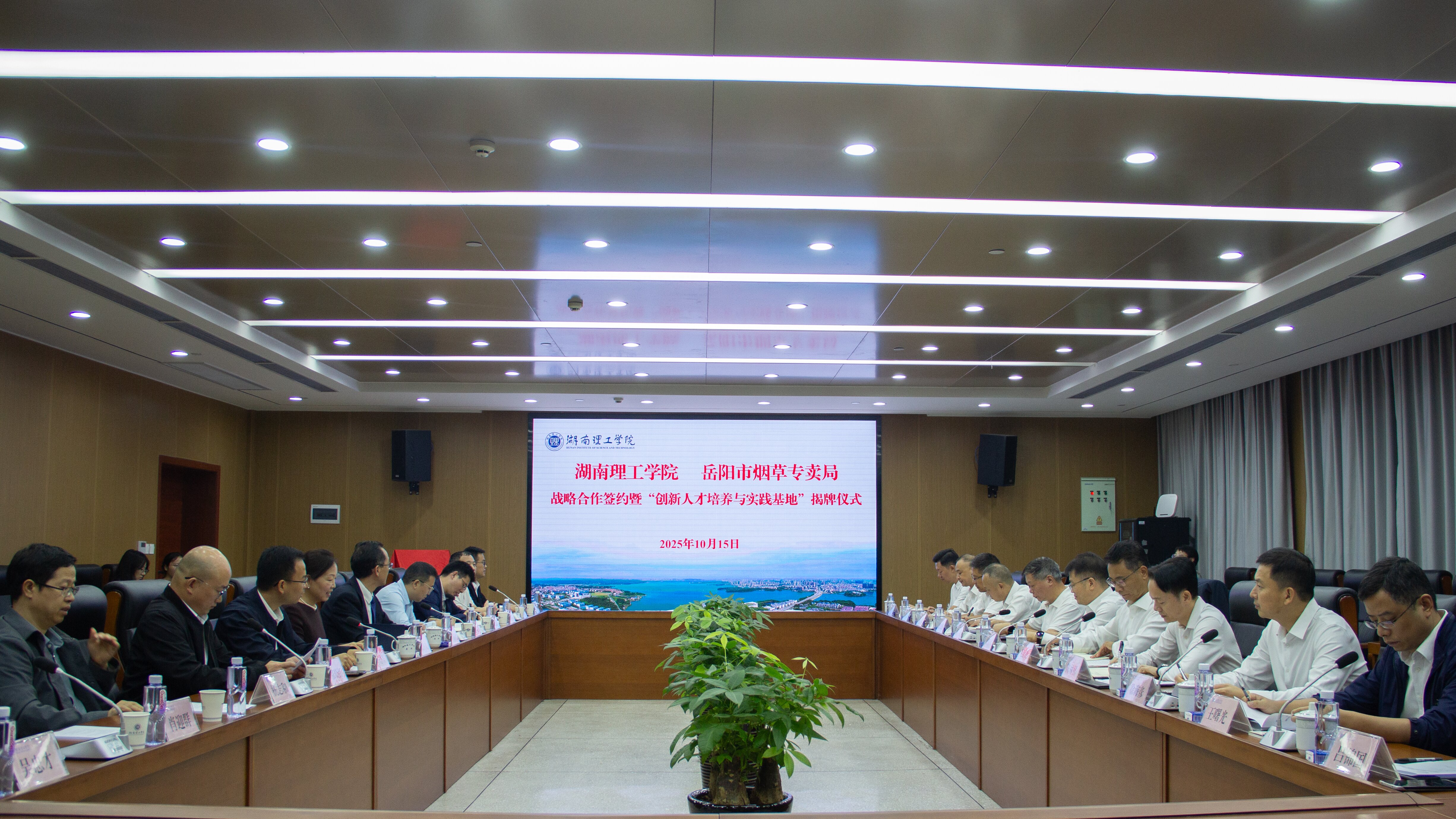 校园网讯 10月15日上午,湖南理工学院与岳阳市烟草专卖局战略合作签约暨“创新人才培养与实践基地”揭牌仪式在学校举行。岳阳市烟草专卖局党委书记、局长张伟军,党组成员、副局长毛岳胜,学校党委副书记徐小立,党委委员、副校长丁跃浇等出席。